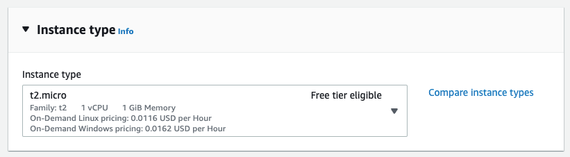 , which is part of the AWS free tier (in fact, it may already be selected for you by default):