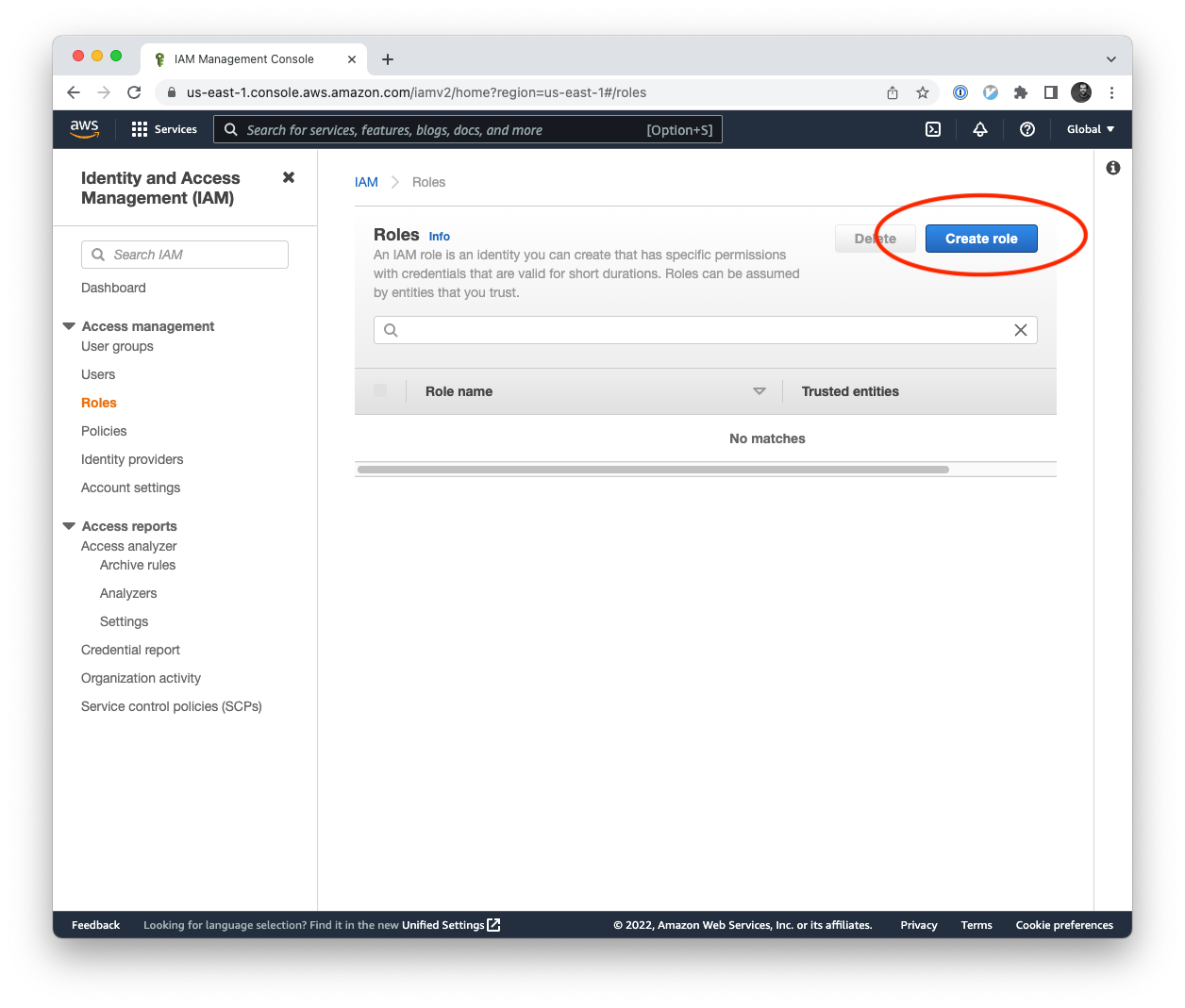 The first step is to create two IAM roles: one to give the Kubernetes cluster’s control plane permissions to make certain API calls in your AWS account and one to give the cluster’s worker nodes permissions to make a different subset of API calls. To create the IAM role for the control plane, head over to the IAM Roles Page and click Create Role: